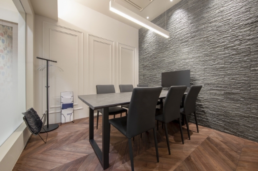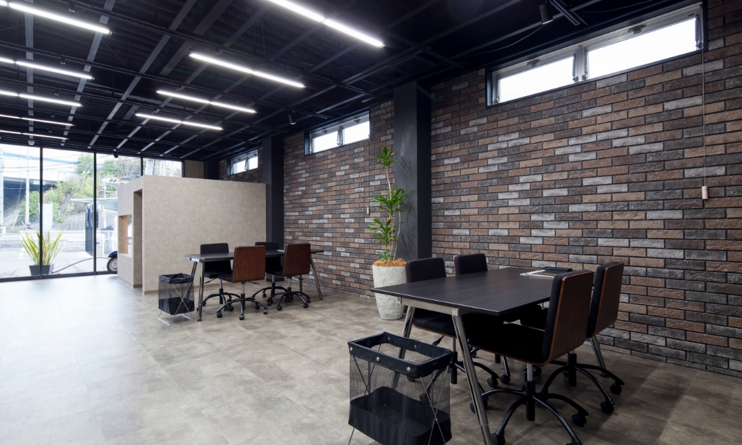 モノトーンで統一したシックな外観に、レンガ調の大人の隠れ家のようなモダンな内観。小さなお子様がいらっしゃる方も安心して打ち合わせしていただけるよう、キッズルームも併設しています。
