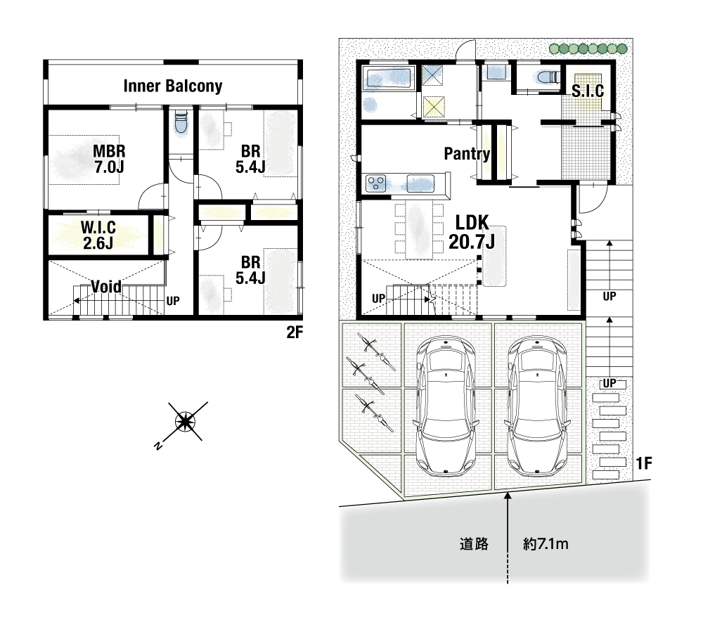 間取り2号地 : 3LDK+W.I.C+S.I.C+パントリー