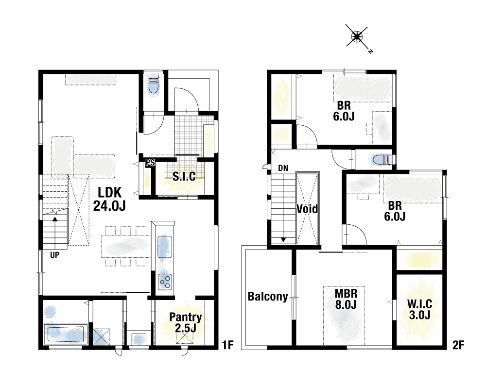 間取り4号地 : 3LDK+W.I.C+S.I.C+パントリー