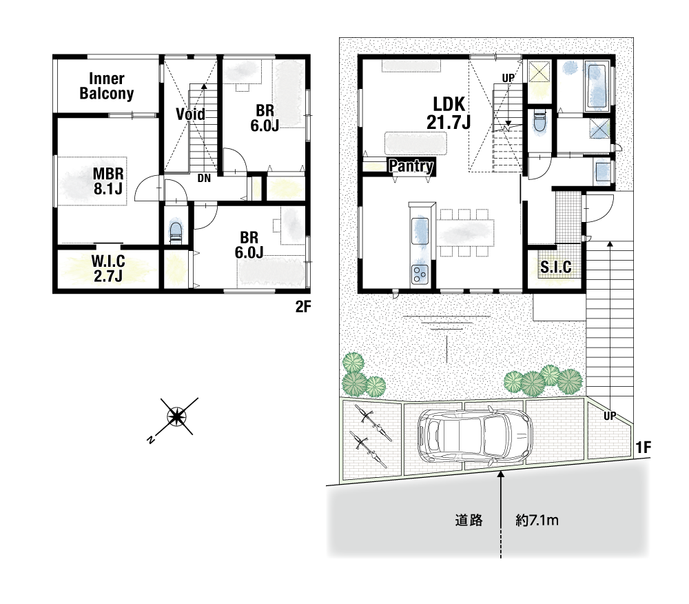 間取り1号地 : 3LDK+W.I.C+S.I.C+パントリー