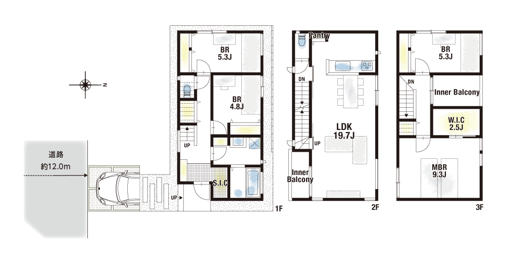 間取り1号地 : 3LDK+W.I.C+S.I.C+パントリー