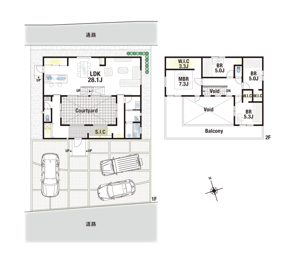 駐車場は3台分のスペースを確保。複数の車をお持ちの方はもちろん、自転車やキャンプ用品なども余裕をもって置くことができ、屋外収納スペースとしても活用できます。