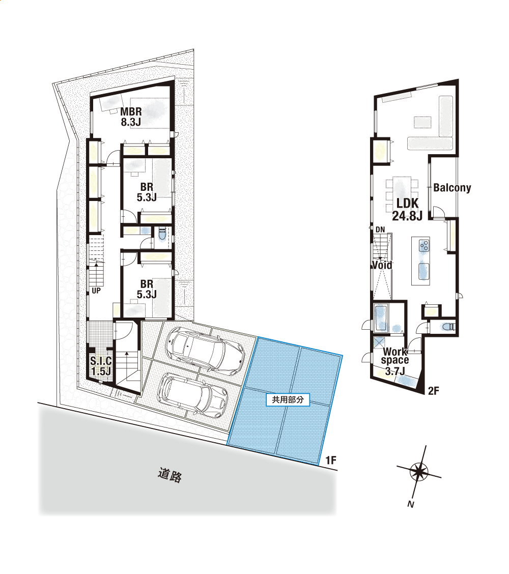 同階には脱衣所兼家事室を設置し、コンパクトで効率的な家事導線で洗濯物が多いご家庭でも安心です。各邸それぞれに日用品のストックができる収納スペースやサービスルームが設けられており、ご家族のカタチに合った使い方ができます。