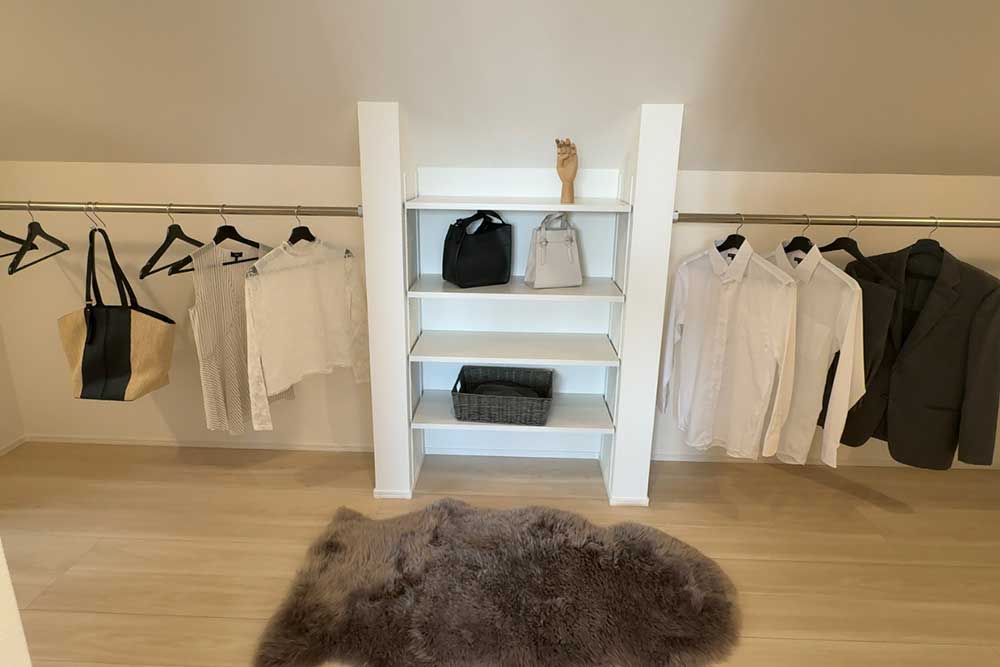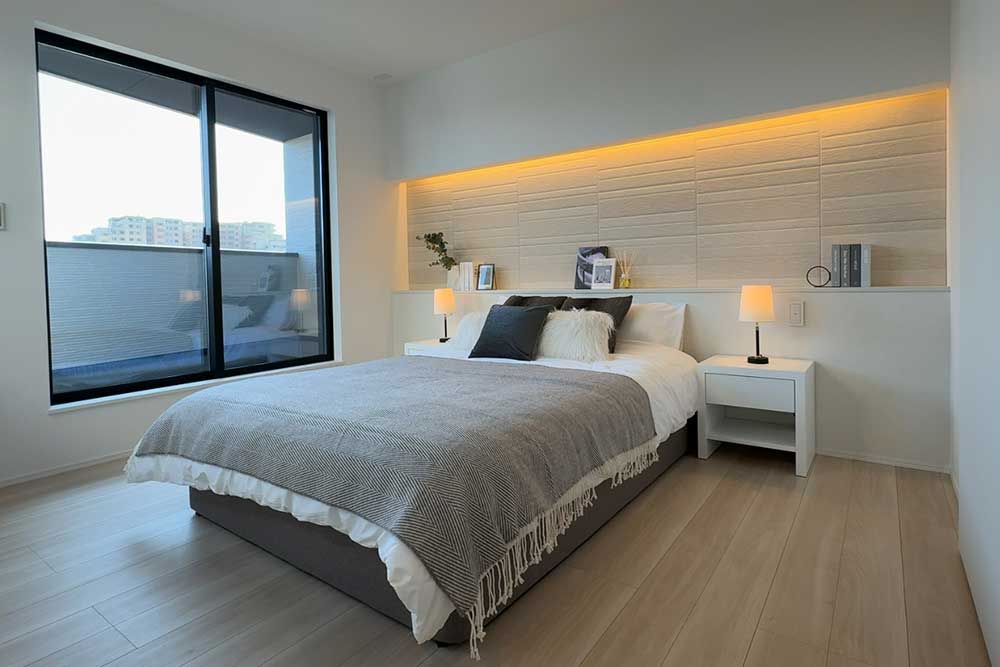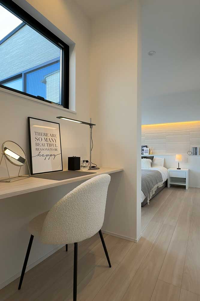 一日の疲れを癒す主寝室には大容量のW.I.Cを完備。衣類や小物の収納はもちろんのこと、スペースの奥行きを活かしてメイクルームとしてご利用いただけます。