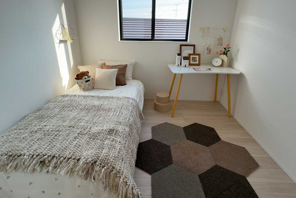 3号地は生活空間をゆるやかに区切ったプランニング。用途に合わせて空間を分けることで、生活シーンにメリハリをもたらします。また、リビングとダイニングの間にはウッドデッキを配置。空間に光と風を届けるだけでなく、アウトドアリビングとしてもお使いいただけます。
