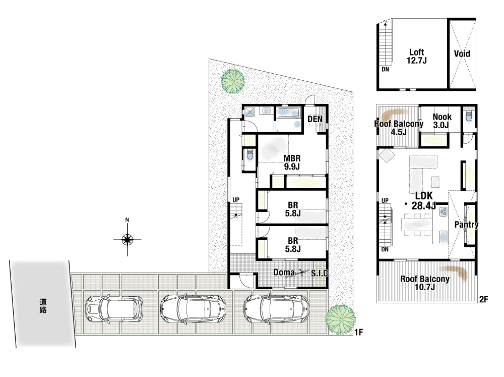 3LDK+DEN(書斎)+ヌック+S.I.C +パントリー