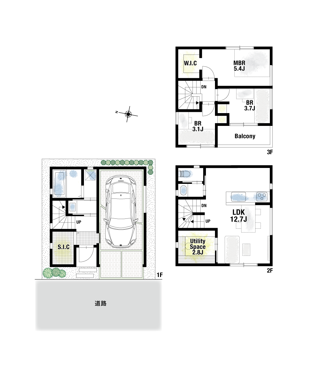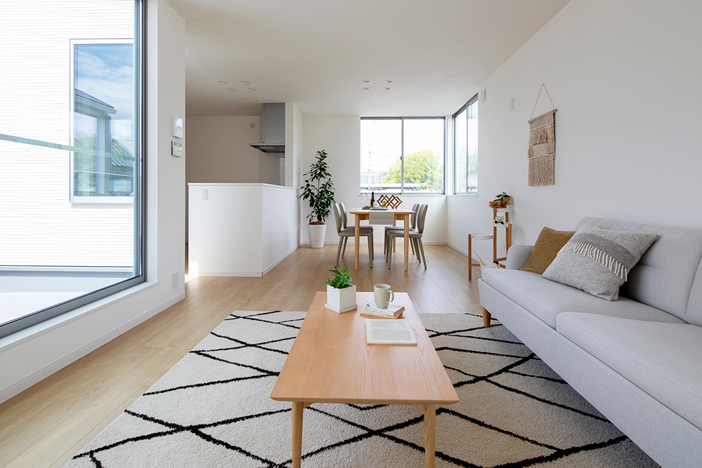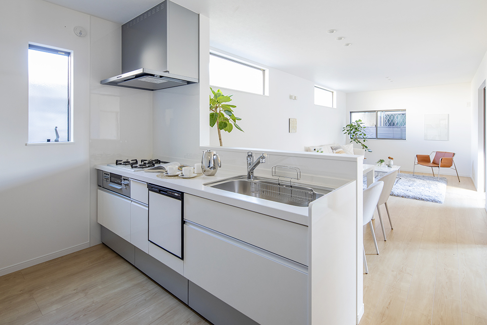LDKは2階に配され、南向きの大きな窓から暖かな陽光が差し込み、明るく開放的な空間に。通行人の視線を気にせず、ゆったり過ごせるプライベートゾーンです。隣接するユーティリティスペースは、パントリーとして食材や調理道具を整理するだけでなく、趣味のワークスペースや家事コーナーとしても活用可能。家族のライフスタイルに合わせ、多目的にご使用いただけます。キッチンはカウンター付きで、調理中も家族との会話が弾み、自然とコミュニケーションが生まれる設計です。3階には居室をまとめ、主寝室にはW.I.Cを完備。衣類だけでなくベビーカーや季節用品もすっきり収納でき、家族の毎日をより心地よく整えます。