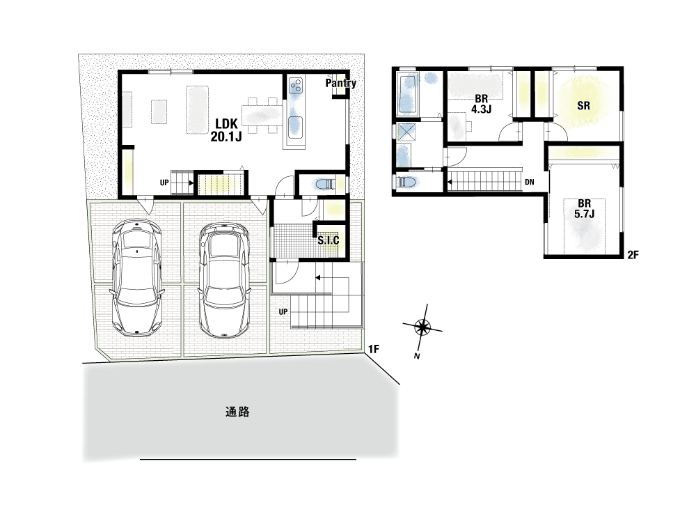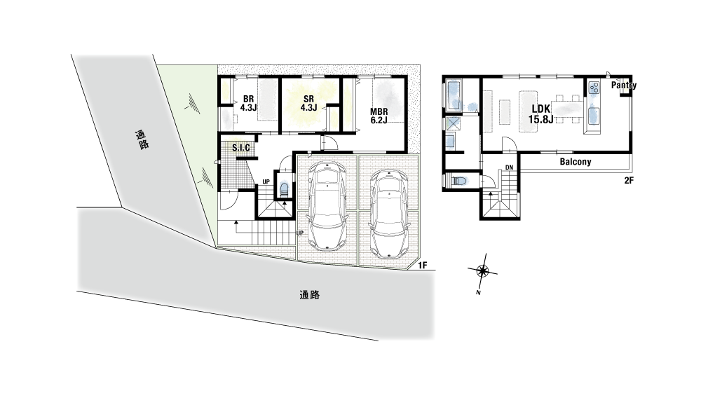 間取り1号地 : 2SLDK+S.I.C+パントリー