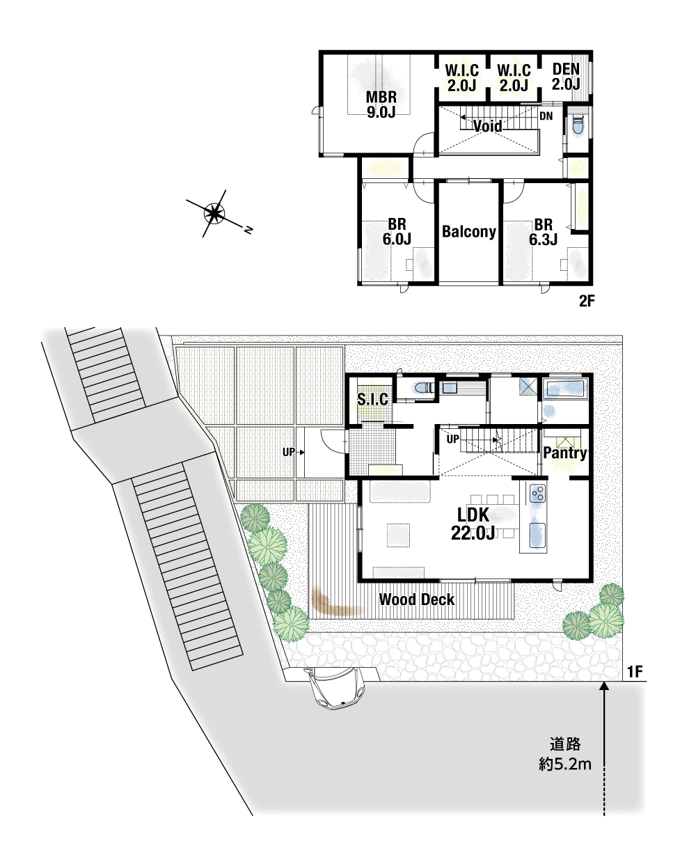 間取り 3LDK+DEN(書斎)+W.I.C×2+S.I.C+パントリー