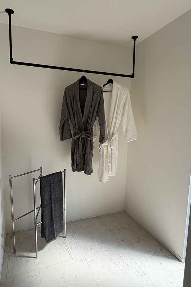開放感のある立地を活かし、陽光や風をたっぷり取り込むプランニング。LDKにはリビング階段を設け、家族が自然と集まる動線を計画しました。家族の時間が増えることで、コミュニケーションも活発になります。キッチンはリビング全体が見渡せるように設計。料理中でもお子様の様子を確認することができます。そして、LDKに隣接した多用途に利用できるウッドデッキをご用意。木のぬくもりを感じながら、リラックスした時間を過ごすことができます。また、脱衣場とランドリールーム、ウッドデッキが繋がっており、効率的な家事動線を実現しました。