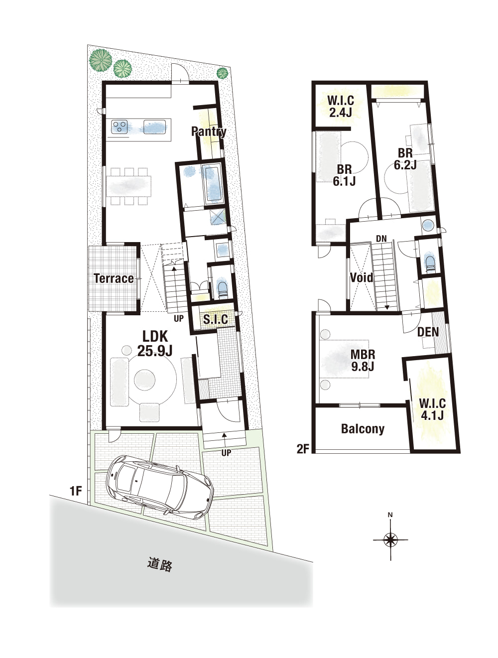 間取り 3LDK+DEN(書斎)+W.I.C×2+S.I.C+パントリー