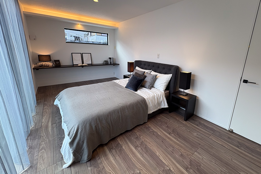 家族やゲストが憩うLDKは約30帖もの広々空間をご用意。フロアタイルを敷き詰めたインナーテラスを室内に設けており、天候に関わらず優雅に寛ぐことができます。4部屋分の寝室は家族のライフスタイルに合わせて使い分けることが可能。来客用のゲストルームとしてもお使いいただけます。さらに、駐車スペースも4台分確保しており、急な来客時にも安心です。収納スペースはW.I.CやS.I.C、パントリーを完備。整理整頓が隅々まで行き届きます。