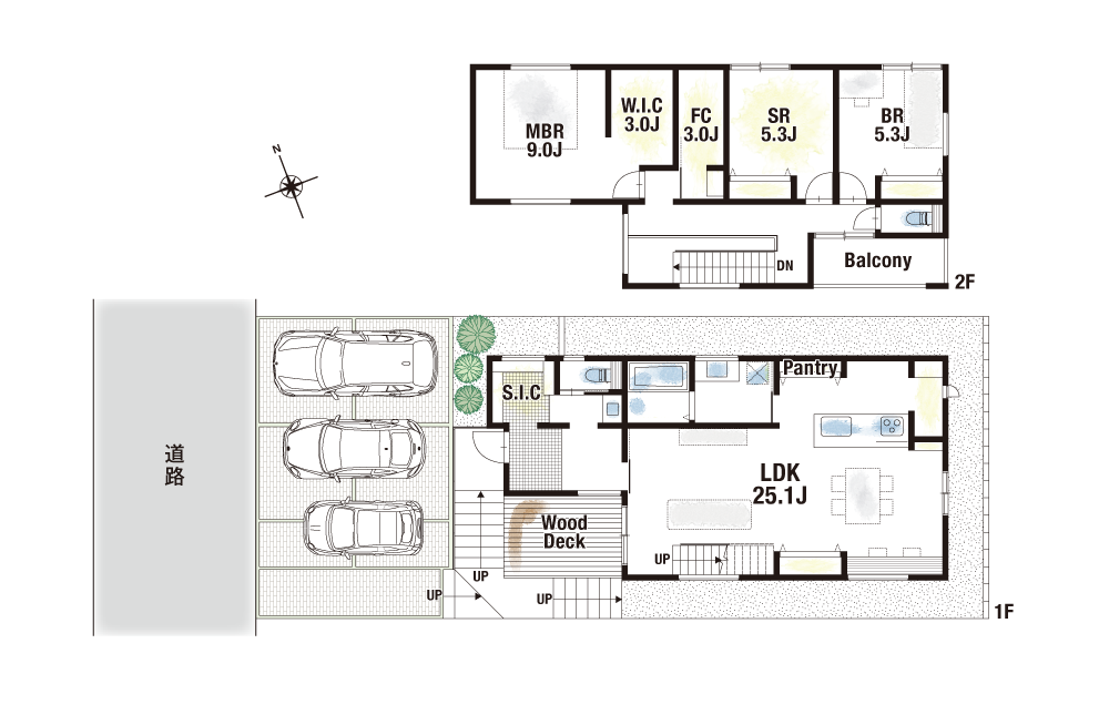 間取り2号地 : 2SLDK+FC+W.I.C+S.I.C+パントリー