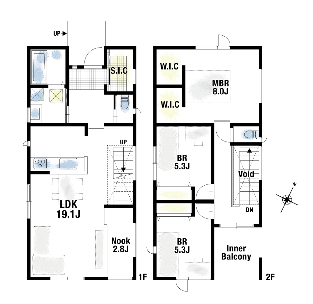 間取り2号地 : 3LDK+ヌック+W.I.C×2+S.I.C
