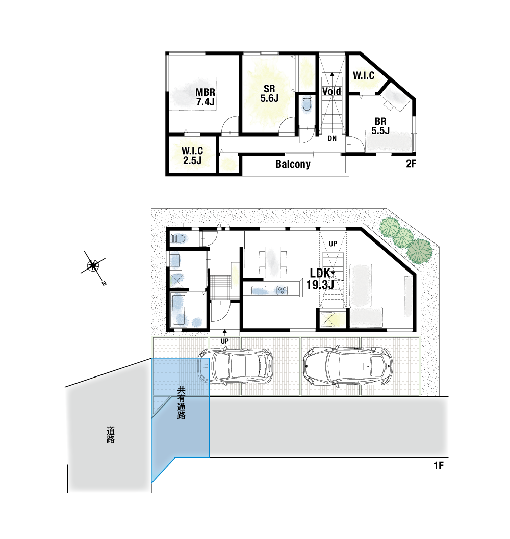 全邸にカウンターキッチンを採用し、調理中でも家族と会話が楽しめる設計に。自然とコミュニケーションが生まれる、心地よい暮らしを演出します。1号地は、LDKを道路面より高く配置することで外からの視線を遮り、落ち着きあるプライベート空間を確保。玄関にはお出かけグッズをしまえる収納を設け、いつでも美しい空間を保ちます。2号地では、水まわりを玄関近くにまとめることで外遊び後の手洗いや着替えがスムーズに。動線に配慮した効率的な間取りが、日々の暮らしに快適さをもたらします。3号地は、1号地と同様に2階LDKを採用し、開放感とプライバシーを両立。さらに、適材適所に収納を設けることで日々の暮らしをより快適に。主寝室には、衣類以外もすっきり収まる大容量収納をご用意しております。