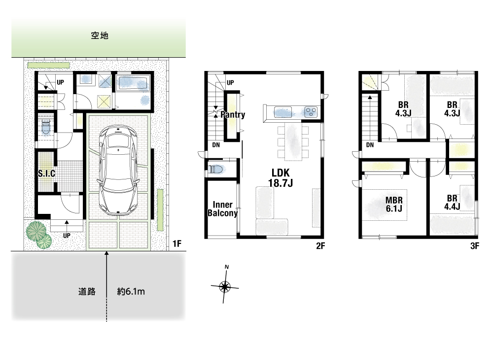 LDKは2階に配置し、プライベート性を確保した設計。直線型を採用しているため、調理中でも家族の様子を見渡すことができ、安心して過ごせます。また階段の上り下りの際には必ずLDKを通過するため、家族が自然と顔を合わせ、日常の中で会話が広がります。全室にクローゼットを備え、さらにパントリーやS.I.Cを設置。適材適所に収納スペースを設けることで、物が散らかりにくく、すっきりと整った暮らしを実現します。家族のつながりを大切にしながら、日々の暮らしを快適にする工夫を随所に盛り込んだ住まいです。