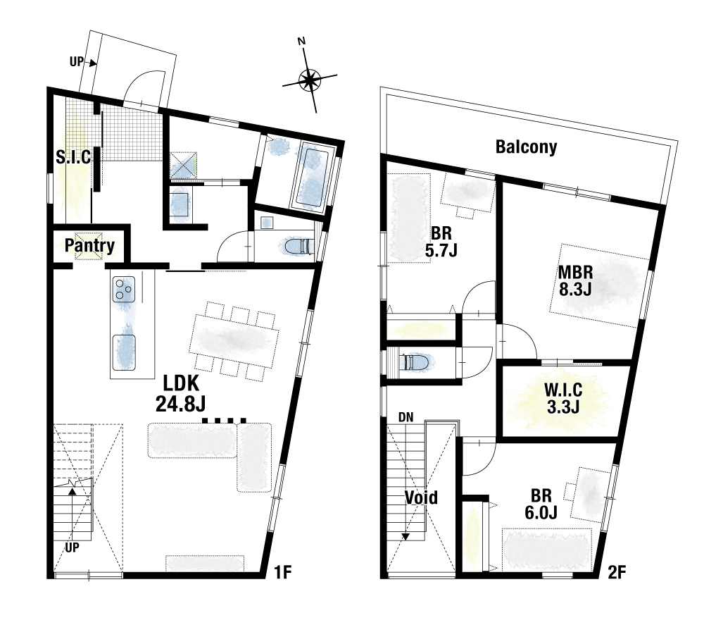 間取り2号地 : 3LDK+W.I.C×2+S.I.C+パントリー