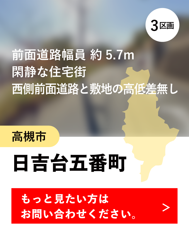 辺り一帯を豊かな自然に囲まれながら、バス一本でJR高槻駅へアクセスできる日吉台五番町。近隣の「安満宮山古墳」は、眺望良好で休日のリフレッシュにもぴったりのスポットです。