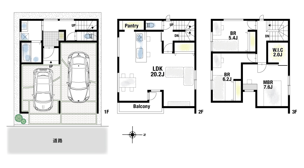 限られた敷地を最大限に活かした、無駄のない空間設計が魅力の邸宅。20.2帖のゆとりあるLDKは、外からの視線が気になりにくい2階に配置し、家族がリラックスして過ごせる空間に仕上げました。カウンターキッチンを採用することで、料理をしながらでもLDK全体を見渡せ、家族との会話が自然と生まれます。さらに、冷蔵庫もすっきり収まる大容量のパントリーを備え、生活感を感じさせない美しい空間を保てます。主寝室にはW.I.Cとカウンタースペースを設置。衣類はもちろん、大型の荷物や季節物までしっかり収納できます。屋根付きのビルトインガレージは、愛車を風雨から守るだけでなく、雨の日でも快適に乗り降りが可能です。