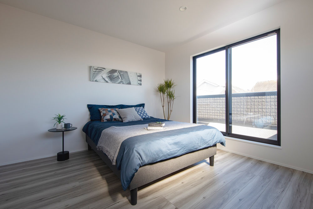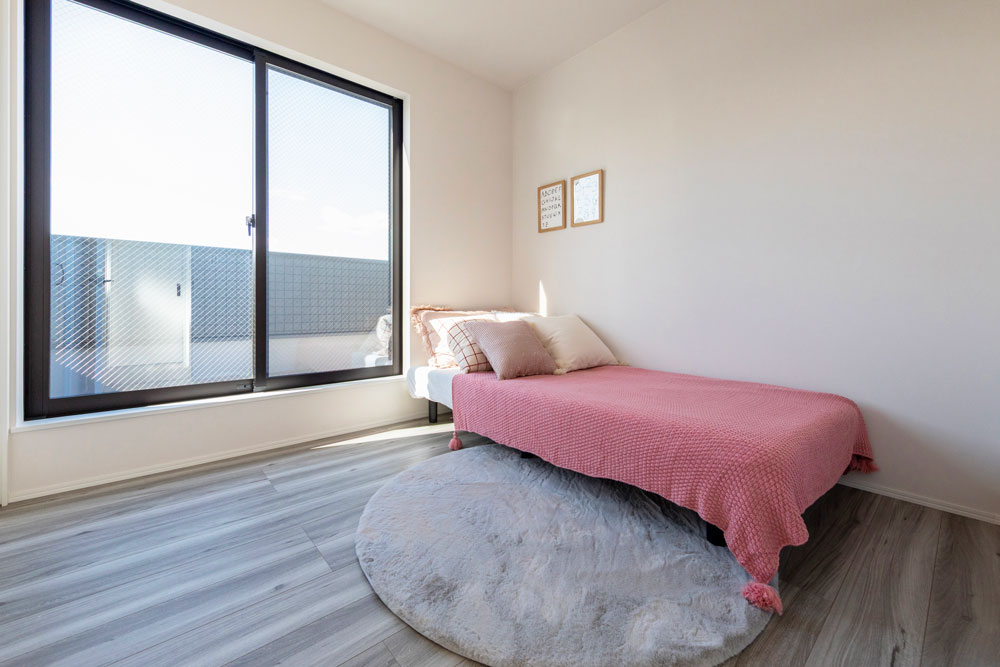 ビルドインガレージのあるシンプルな間取りの住まい。LDKは2階に配置することで外部からの視線から解き放たれ、家族だけの寛ぎ空間に。また、3階の寝室には必ずLDKを通るため、家族と交流する時間が自然と生まれます。1階には多用途に使えるストレージルームをご用意。季節物や備蓄品の収納、キッズスペースなどライフスタイルに合わせて活用できます。バルコニーは3ヶ所設けており、洗濯物が多い日でも安心です。
