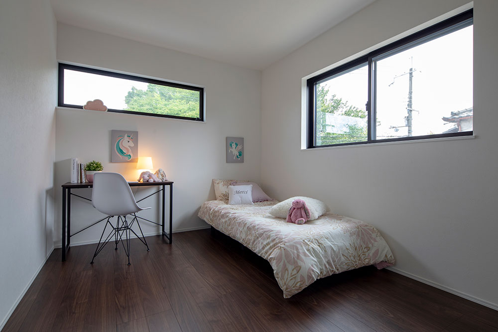 2号地はLDKを2階に設計。道路からの視線を気にせず、思い切りくつろげる空間となりました。さらに、洗面所と脱衣所が個別に設計されており、家族同士で気を遣わず使用できます。