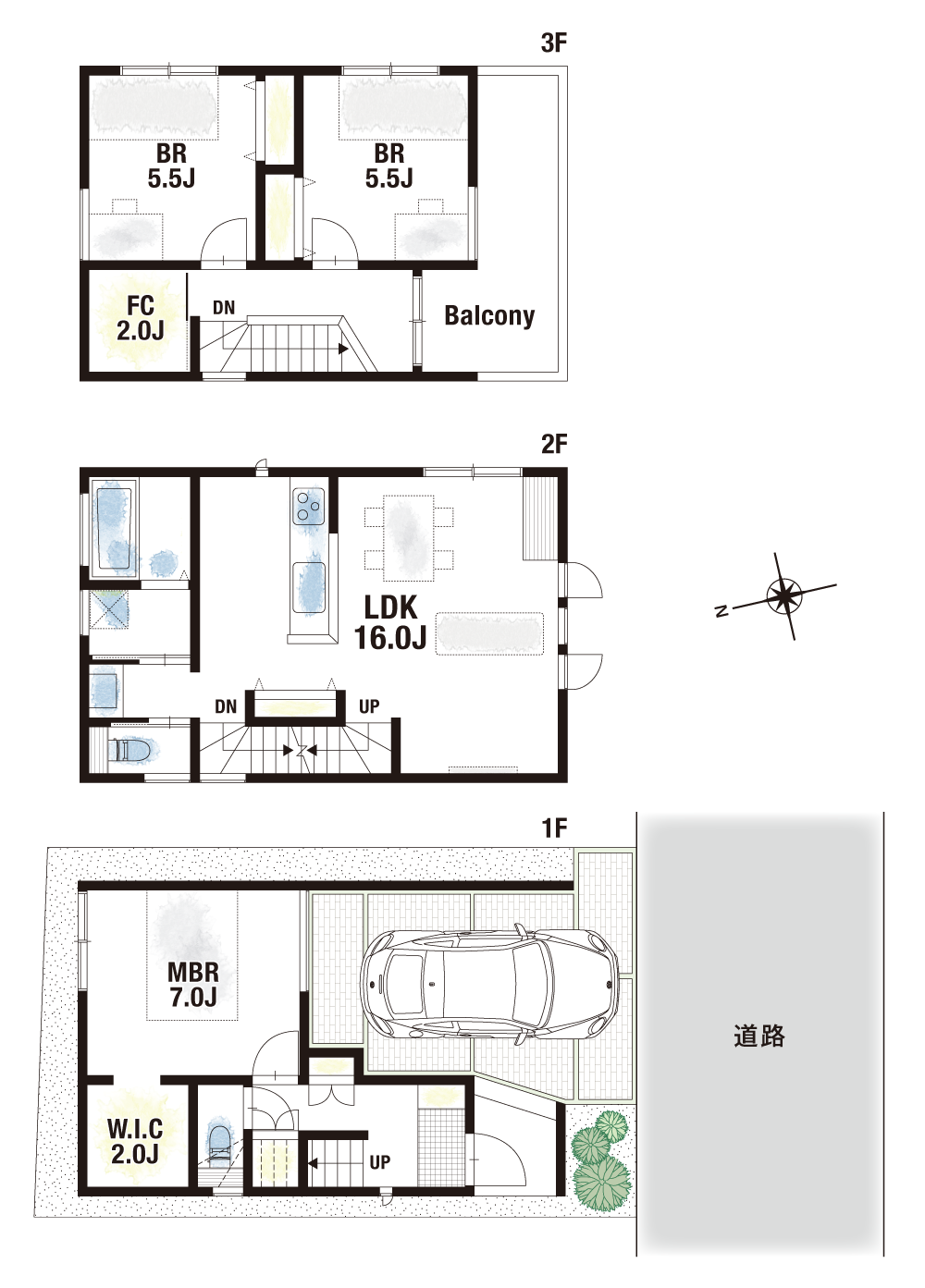 間取り1号地 : 3LDK+W.I.C+S.I.C
