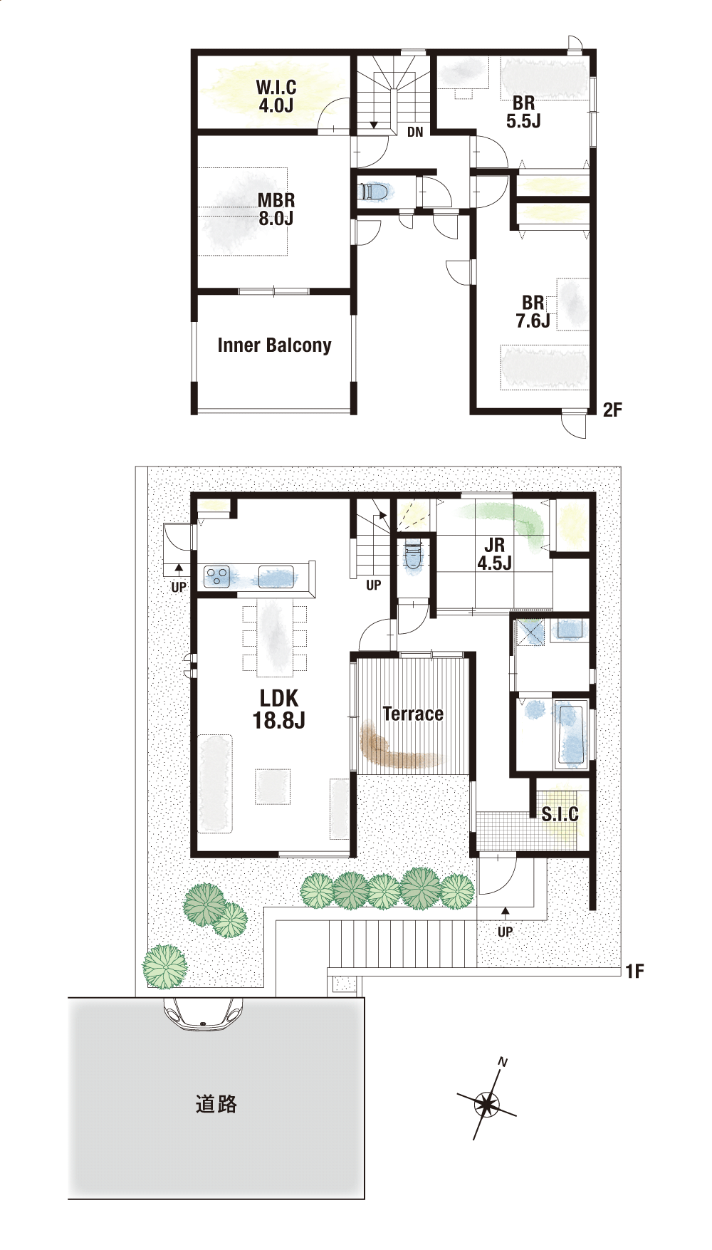 また、主寝室に約4帖のW.I.C、玄関にはS.I.Cといった収納スペースも完備。随所に豊富な収納を備え、綺麗が続く住まいを叶えます。