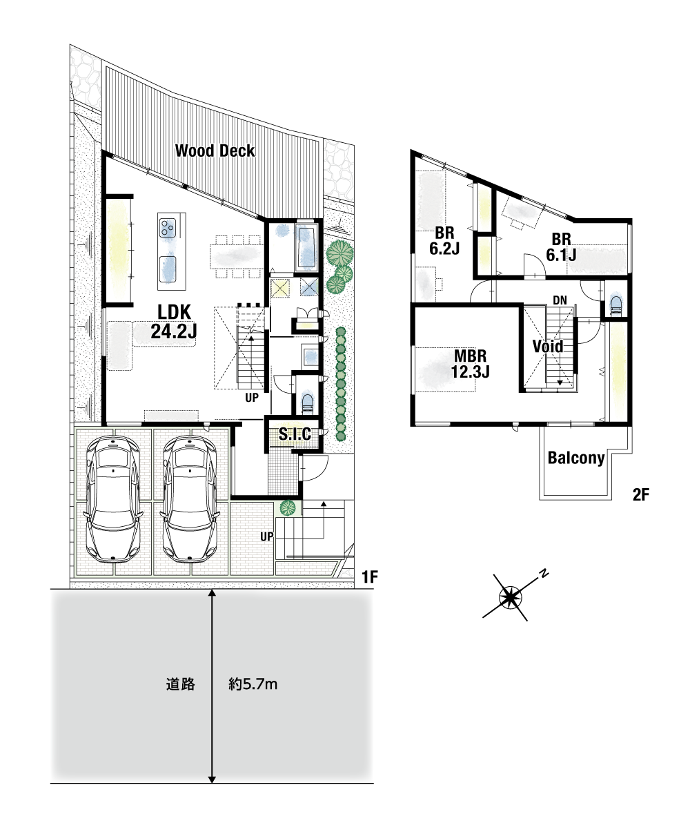 連動するウッドデッキからは、やわらかな風と陽光が室内に届き、さらに深い安らぎをもたらします。各居室にはゆとりある収納を設け、S.I.Cやパントリーなども充実。
