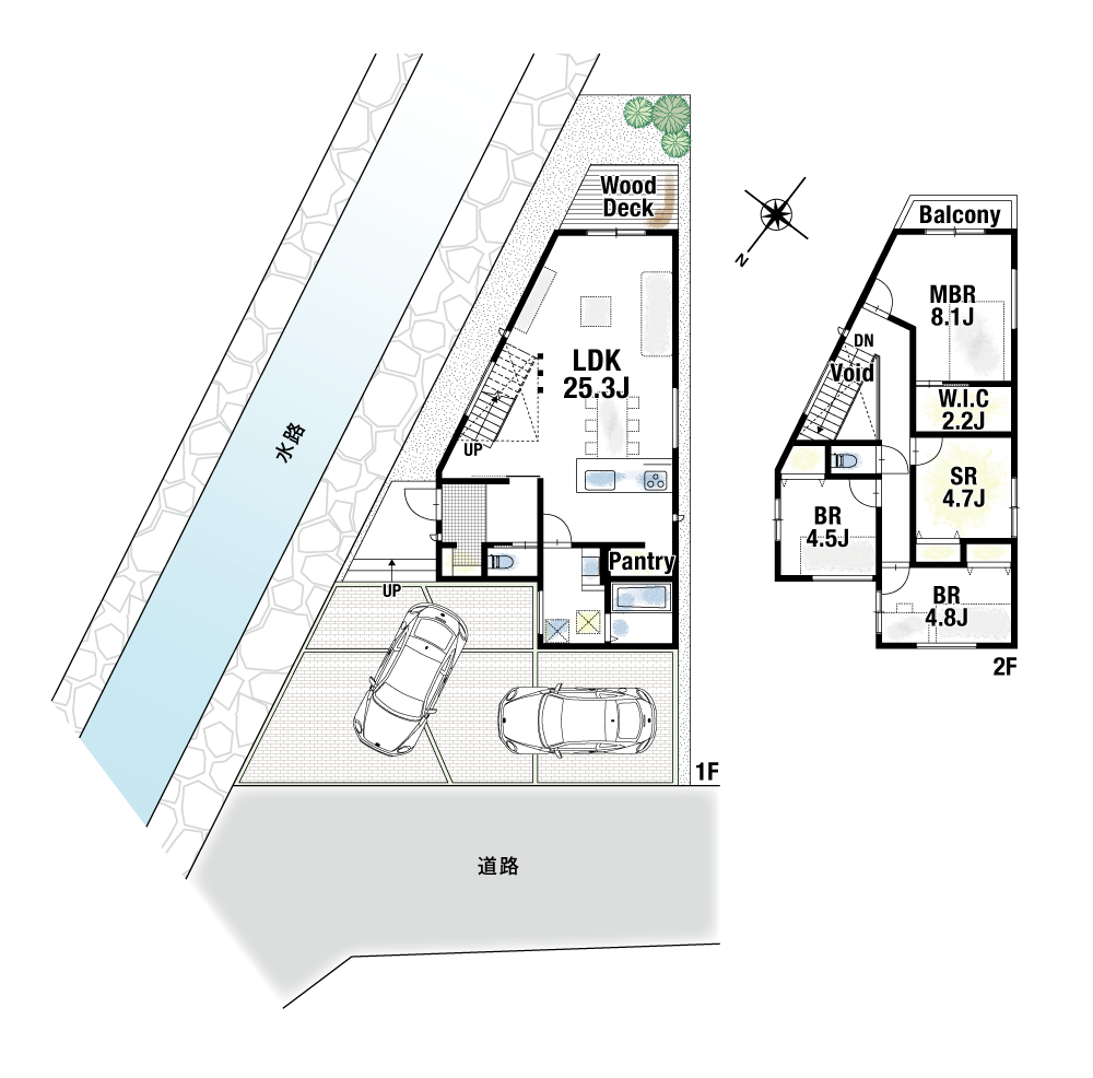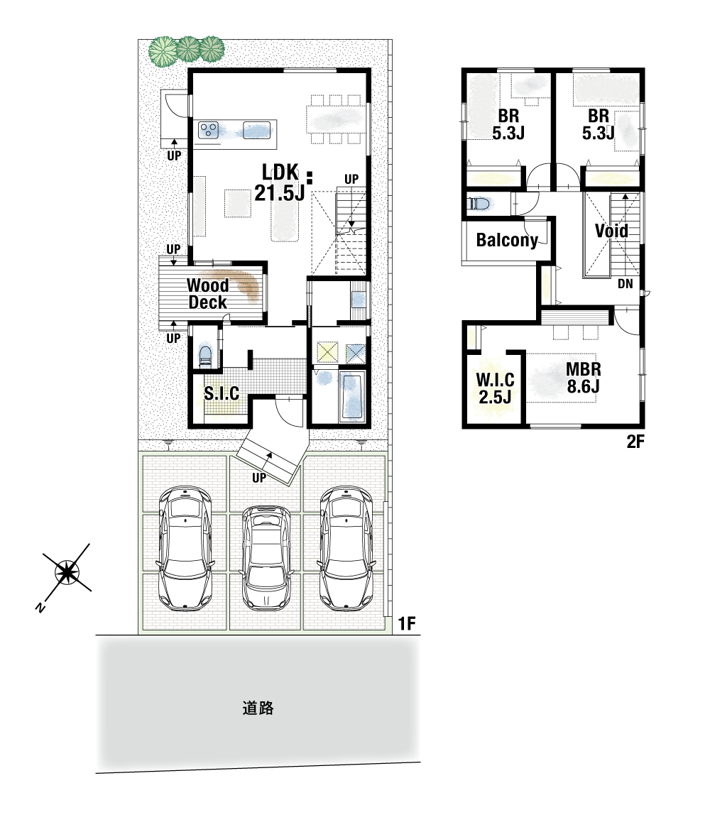 W.I.Cといった大容量クローゼットを完備。衣服や布団、季節の家具を収納でき、綺麗が続く住まいへと導きます。駐車場は2台以上の車を停めることが可能。複数の愛車や来客、自転車やバイクを置くなど多彩に使用できます。