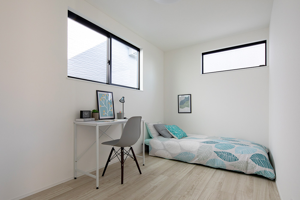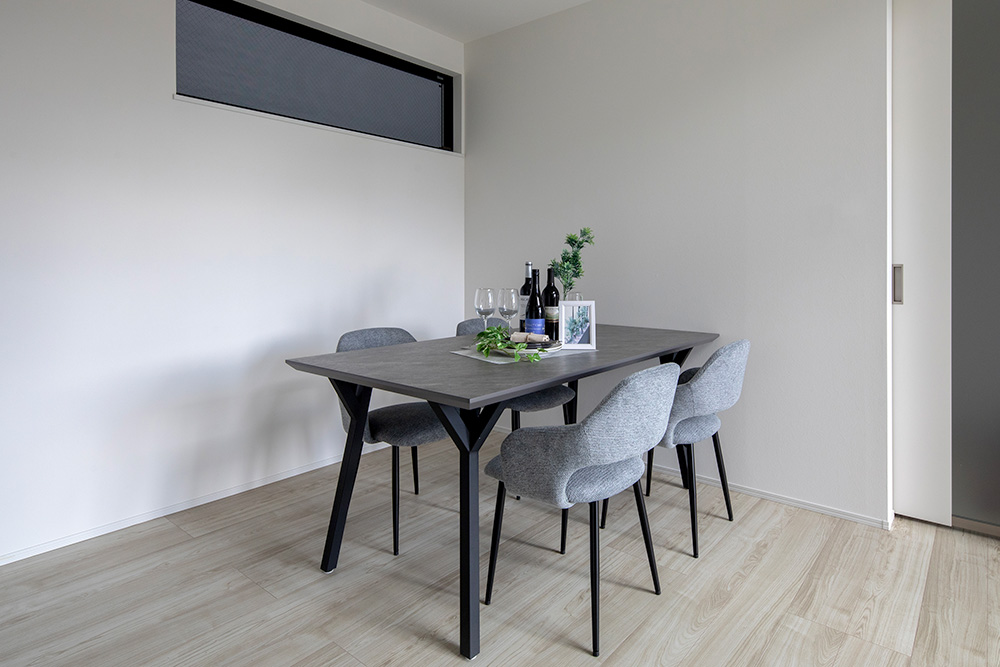 インテリアからアクセントクロスまでグレートーンで統一することで、落ち着きのある佇まいに。
