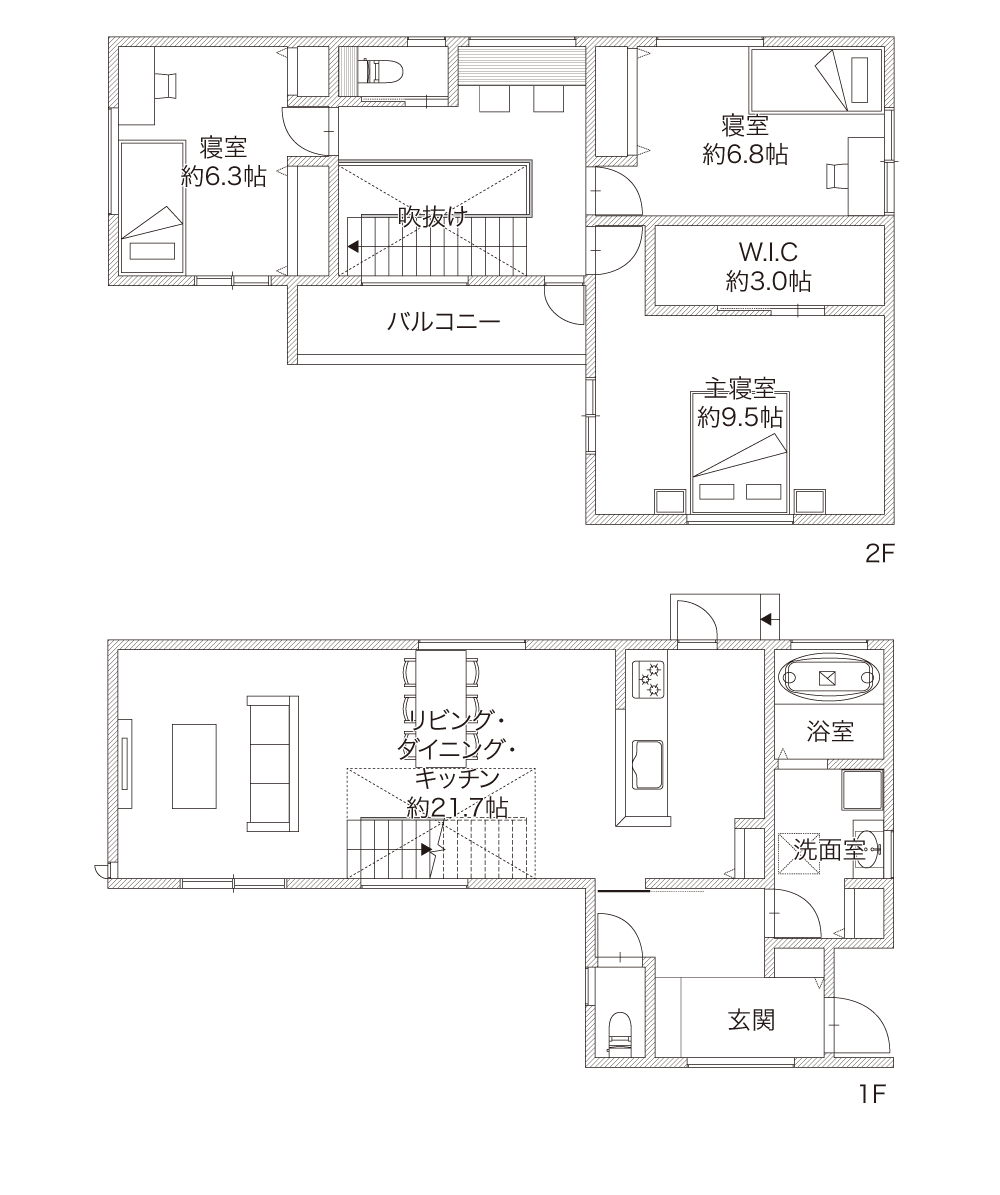 光がたっぷり入り込む大開口窓と吹抜けを取り入れ、明るさと開放感に満ちた暮らしを叶えます。