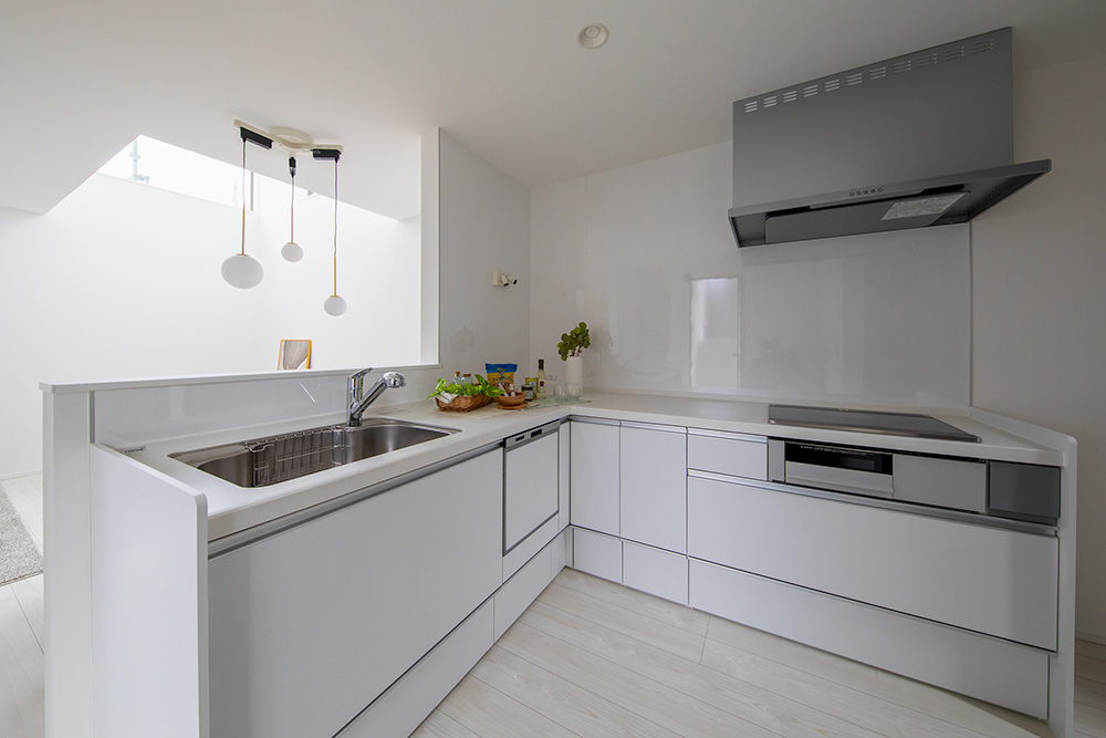 料理がしやすいL字型キッチンやワークカウンター付きの洗面室など、利便性にもこだわりました。