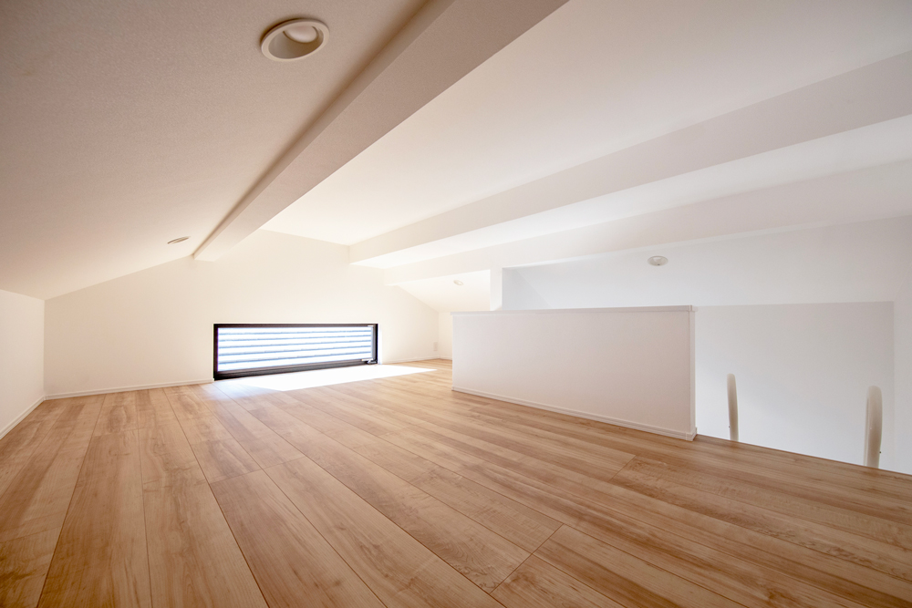 リビングに便利なロフトを設け、スペースを余すことなく活用した空間設計。