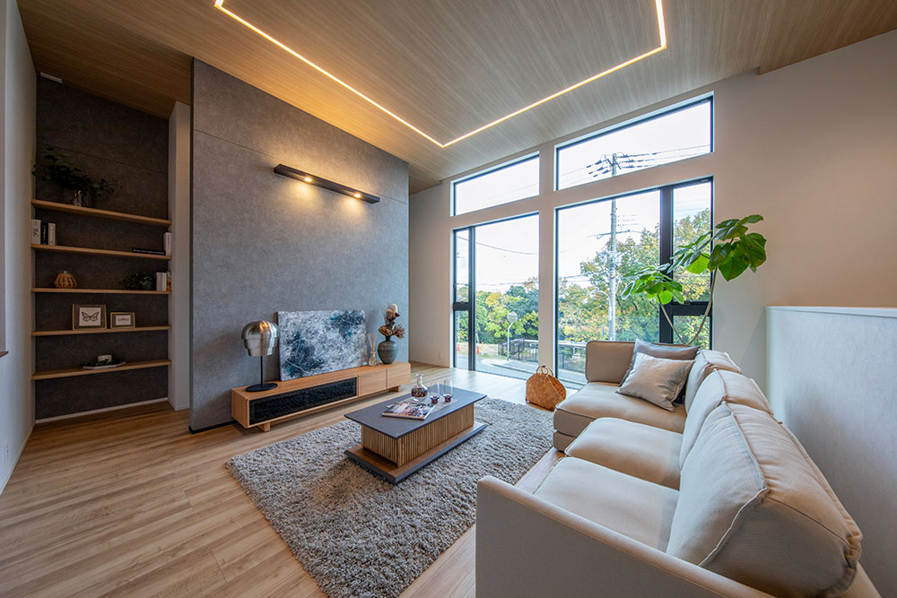 高台のロケーションを活かし、大開口部から柔らかな陽光が差し込みます。