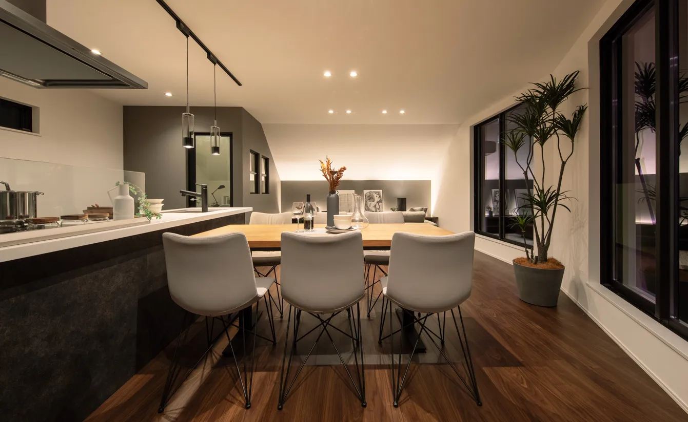 家族の団欒が華やかになるダイニング。美味しい料理を味わいながら、賑やかなひと時を愉しむ。