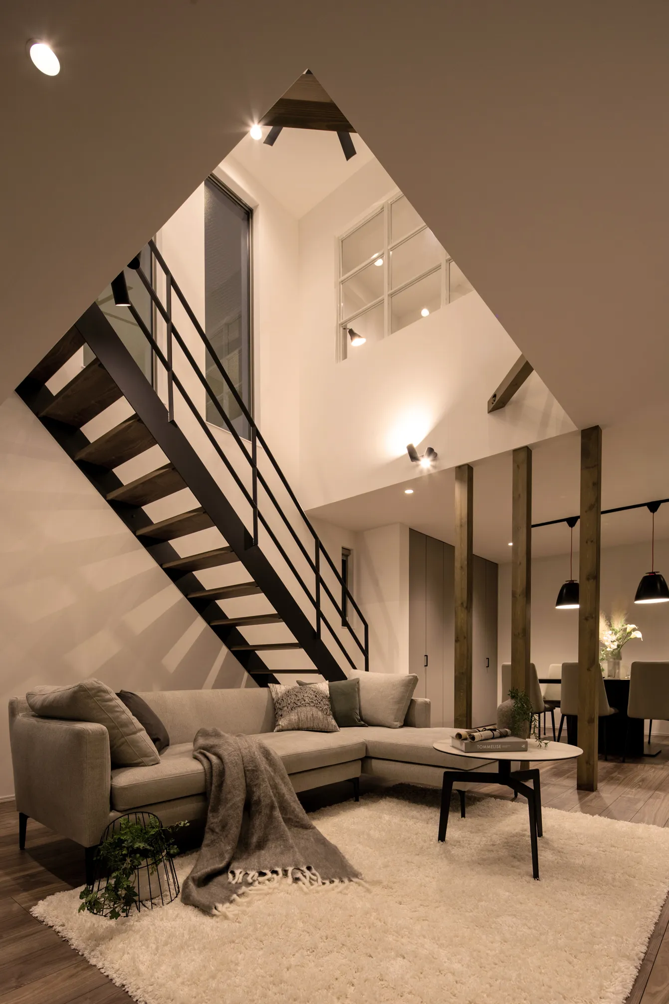 南側の吹抜けはリビングにひだまりを生み、温かな家族の時間を創出してくれる。