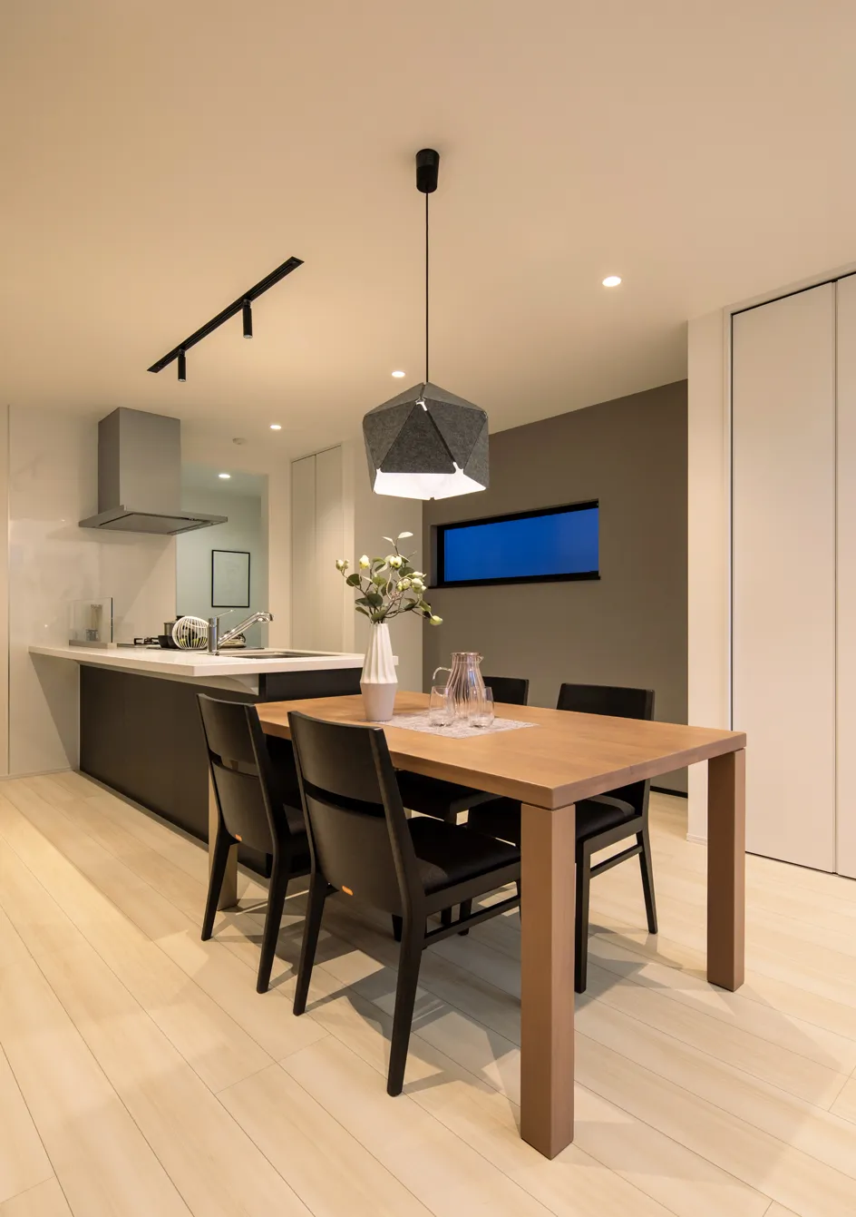ダイニングはキッチンと横並びになるように配置。料理中でも家族の団欒に加わることができる。