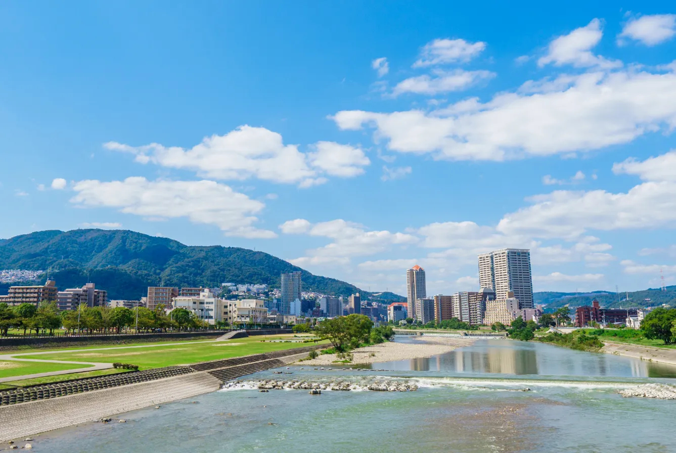 六甲山系の自然と美しい街並みが風光明媚な景観を創る生瀬高台。近くを流れる武庫川には遊歩道が整備されており、散歩やジョギング中でも季節の移り変わりが感じられる。