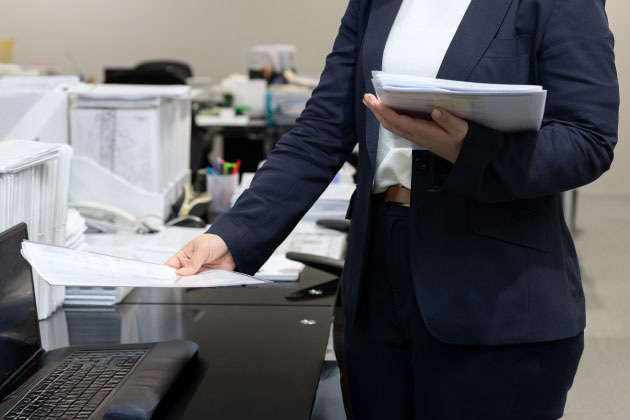 業務の一つとして、社長決裁に必要な書類の準備を行っています。押印漏れがないよう、付箋を用いて押印箇所を分かりやすくお伝えするなど、ミスや差し戻しが起きないよう細やかな気配りを心がけています。