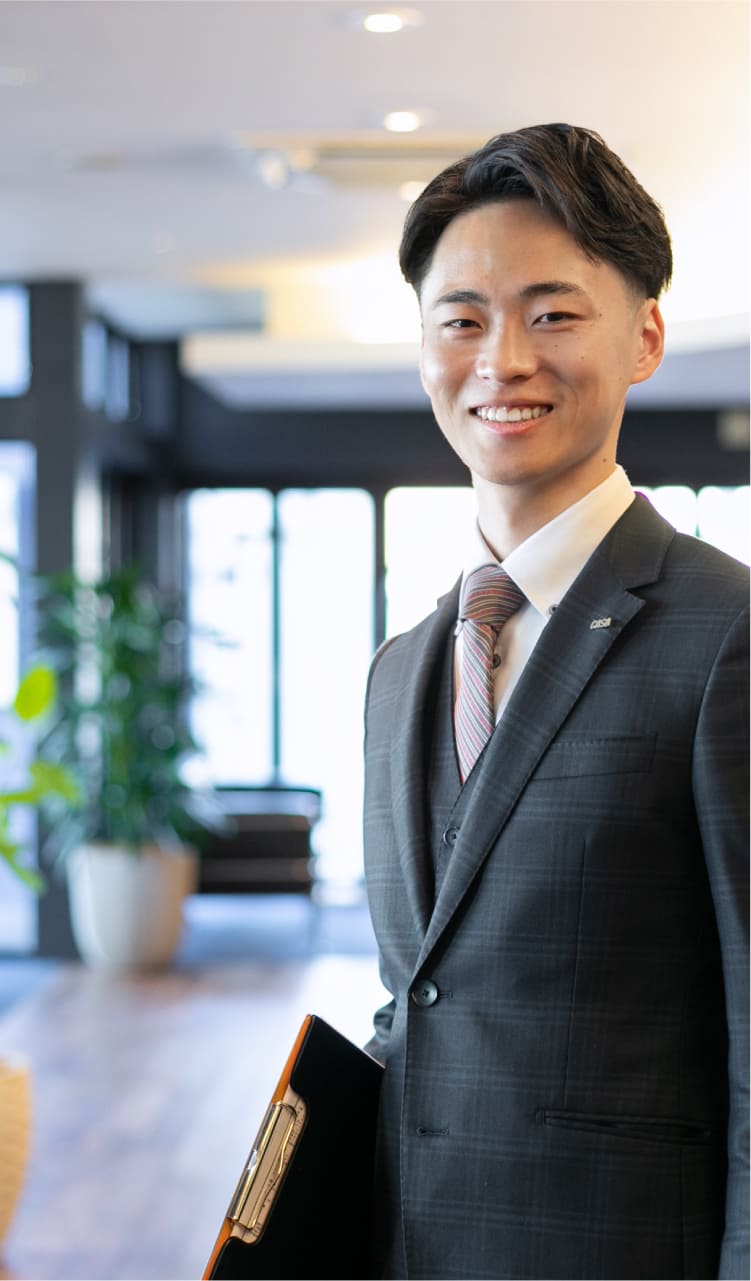建築関係の仕事に就く父の影響で、住まいに関わる営業に興味を持つようになりました。そして大学2回生の頃から就職活動を始め、在学中に宅建の資格も取得しました。