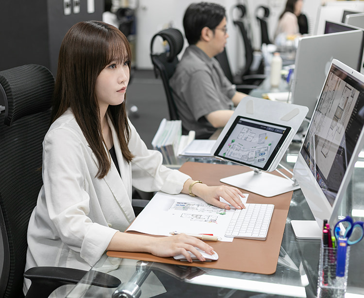 就職活動では、多くの企業で応募できる学部に制限がありましたが、当社は学部不問で、未経験でも成長できる教育体制が整っている点に魅力を感じました。さらに、不動産のデザインは成約という形で成果が明確に見えるため、より興味が深まりました。