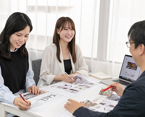 当社はコミュニケーションが取りやすく、率直な意見交換ができる環境です。優しく明るい方が多く、悩みも気軽に相談できるため、日々居心地の良さを感じています。打ち合わせでも自然と笑いが生まれることが多く、その明るい雰囲気が自由な発想や新しいアイデアにつながっています。