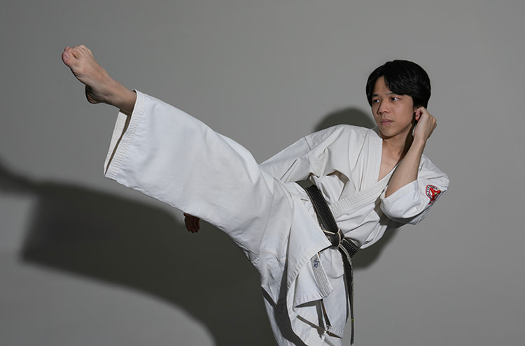 極真空手の黒帯を持っており、道場で子供たちに空手を教えています。また、長期休暇を利用してタイに行くこともあります。