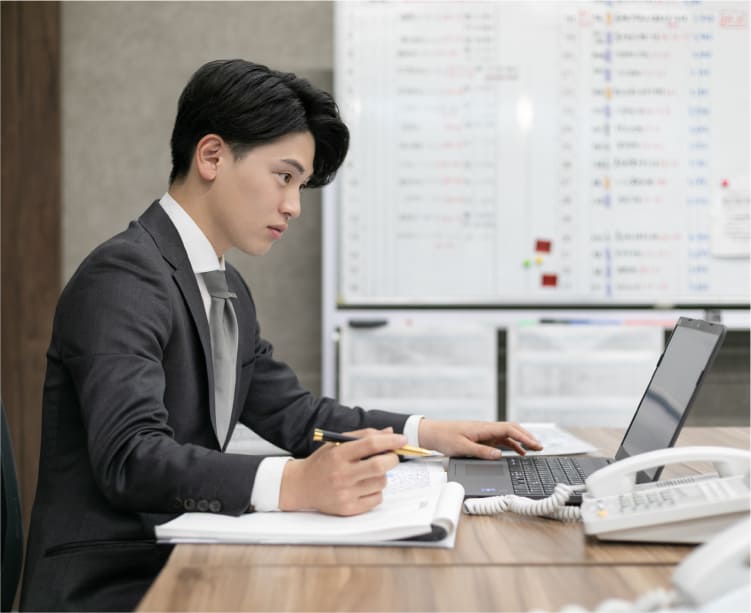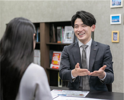 週末の物件案内や査定に向けて、平日は役所での調査や資料作成など、「準備」に時間を充てることが多いです。「準備」の大切さは、入社当初に部長からご指導いただきました。普段から様々なケースを想定し、お客様のニーズに合わせた資料をご用意しています。以前に担当した査定案件では、当初売主様から信頼を得られず、悔しい思いをしました。それでも、次にお会いするまでにできることを積み重ね、丁寧に対応することで少しずつ信頼関係を築きました。次第に売主様の表情や言葉にも変化が表れ、最終的には成約につなげることができました。成約後には、「末井さんの給料UPしてあげて!」と親しみを込めて感謝の言葉をいただけた時は、本当に嬉しかったです。契約後や入居後に感謝の言葉をいただけることが、不動産営業としての大きなやりがいになっています。