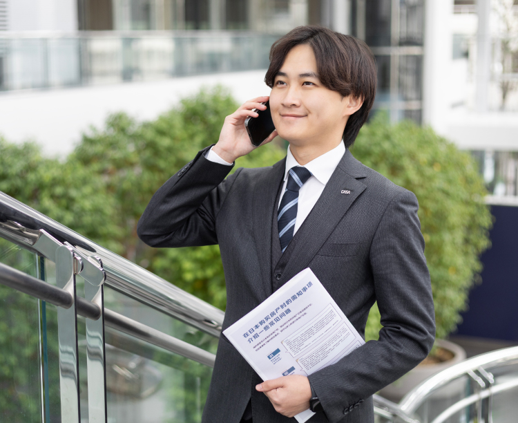 不動産挑戦部に配属。先輩とともに挨拶回りや現場同行を行う。