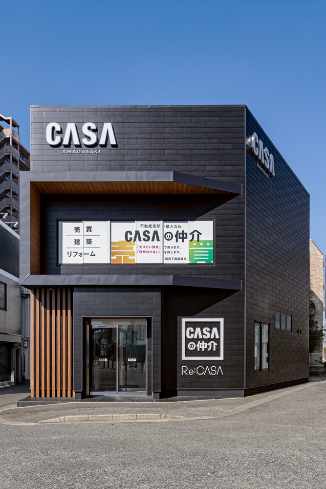 気軽に足を運べる駅前型の店舗として、快適に過ごしていただける内装デザインを目指した尼崎店/Re:CASA 尼崎店。エントランスには、スリット状の意匠を随所に施した受付カウンターを設計しました。間接照明による柔らかな光が場に華やかさをもたらし、お客様を優しく迎え入れます。また、エントランスを進んだすぐ先にはオープンな商談スペースが広がっており、スムーズなご案内を第一に考えた動線設計です。