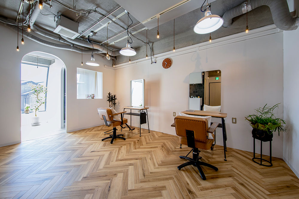 髪を整えるだけでなく、訪れる人に癒しを届ける美容室。居心地の良さを追求し、室内にゆとりと柔らかさを持たせた施工事例をご紹介します。